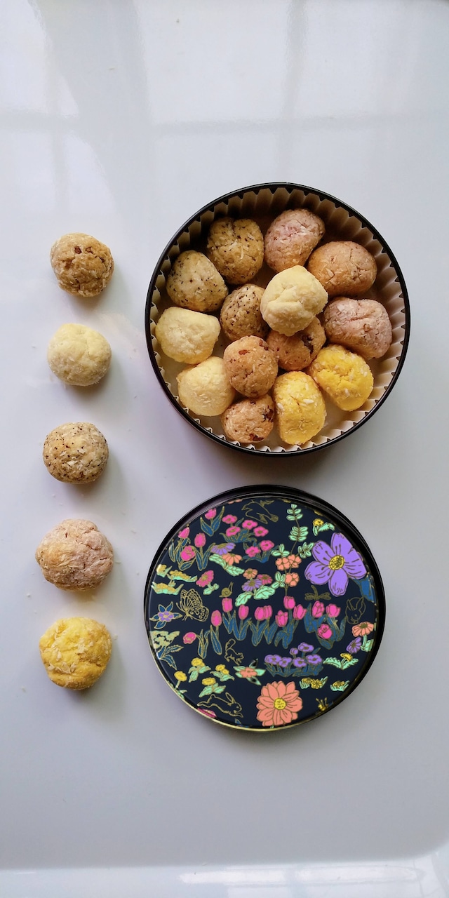 焼き菓子アソート缶『花畑』 ココナッツクッキー5種のアソート *ご贈答品の場合は、箱と袋をサービス致しますので備考欄にてお知らせください ステキな缶の製造元「お菓子のミカタ」さんで自社のお菓子缶について配信してくださいました リアルなご感想をぜひご視聴ください https://youtu.be/bUzMnj6cLSg 【原材料】 -ココナッツプレーン- 米粉、アーモンド、コーンフラワー、片栗粉、ココナッツ、ココナッツオイル、メープルシロップ、塩 -ベリー- 米粉、アーモンド、コーンフラワー、片栗粉、ココナッツ、ココナッツオイル、メープルシロップ、苺、ラズベリー、塩 -コーヒー- 米粉、アーモンド、コーンフラワー、片栗粉、ココナッツ、ココナッツオイル、メープルシロップ、コーヒー、塩 -カカオ- 米粉、アーモンド、コーンフラワー、片栗粉、ココナッツ、ココナッツオイル、メープルシロップ、カカオニブ、ヘーゼルナッツ、塩 -レモン- 米粉、アーモンド、コーンフラワー、片栗粉、ココナッツ、ココナッツオイル、メープルシロップ、レモン、カボチャ、塩